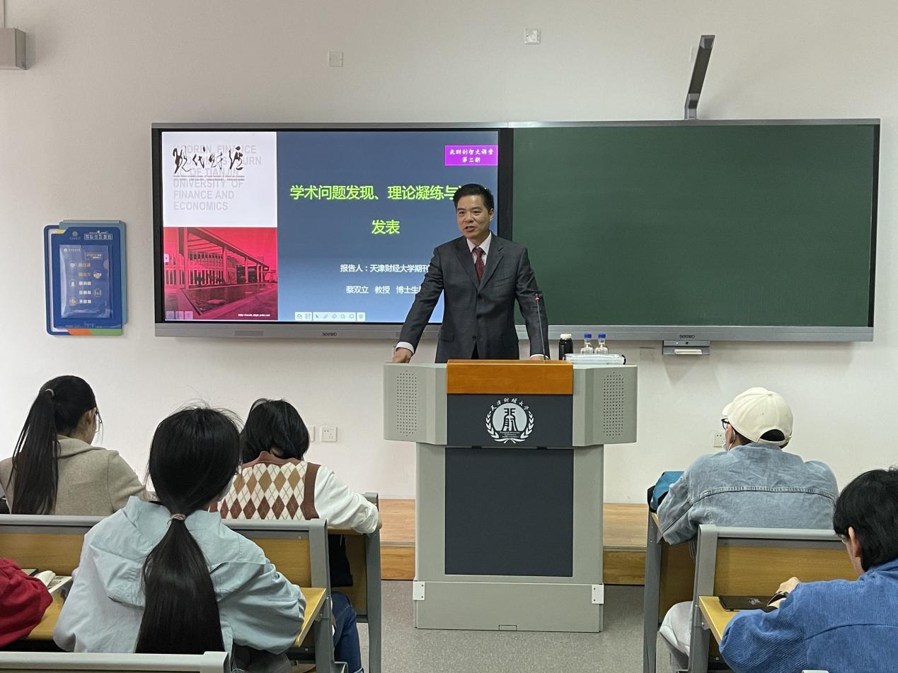 企业管理系博士生导师蔡双立教授作了题为“学术问题发现、理论凝练与论文发表”的专题报告,具体讲解了学术问题的发现、问题凝练、文献溯源、方法匹配与理论升华等内容。