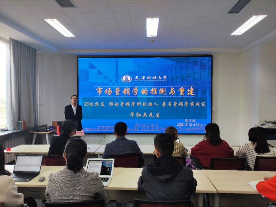 华红兵先生通过回顾营销发展史,结合其三十年来服务过的600多家行业头部企业,如“王老吉”、“农夫山泉”的营销实践案例批判西方营销理论,通过建立移动营销的底层逻辑和组合算法,构建中国移动营销脉络,分享了即将出版的著作《移动营销管理》第四版中的最新研究成果。华红兵先生观点精辟、方法独特、语言幽默,为大家奉献了一场精彩的学术讲座,得到与会师生的高度评价。
