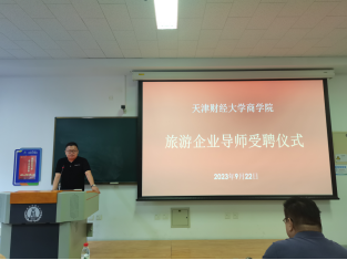 天津泰达文化旅游集团有限公司董事长张锡刚先生在介绍了公司业务之后表示,作为校外导师会以专业的态度和知识为学生提供指导和帮助,与校方共同提升教学质量,培养具备实践能力的旅游业人才。天津酒博印象博物馆总经理、中青旅(天津)国际旅行社副经理康宁先生作为优秀校友,讲述了自己的从业经历,希望同学们热爱自己所学的专业领域,积极投身于旅游业,并欢迎师生前往企业参观学习。携程旅行网门票活动业务部区域经理王立伟先生也是旅游系优秀校友,他分享了自己从导游开始的对旅游行业的感受与收获,强调在工作中要从基础做起,学习多方面知识充实自己,才能不断进步。天津泰达文化旅游集团有限公司总经理张子康先生认为,旅游业作为综合性服务行业是复杂而高级的,应该关注现代旅游业知识化、智能化的发展趋势。同时他提出,企业愿意支持同学们的好创意,给予大学生入职或创业的机会。