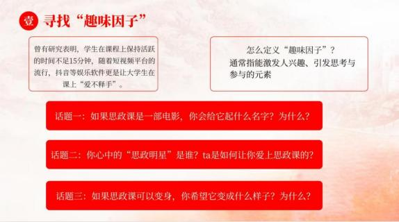 思政课在不同学生眼中的形象有所不同,有学生认为它充满智慧与启迪,是成长的“魔法书”;也有学生觉得它略显枯燥,是学习的“挑战山”。本次研讨会核心议题为:如何在挑战中寻找思政课的魔力,提升思政课堂的抬头率与获得感,让每一位学生都能感受到思政课的魅力与价值。整个复盘研讨分为四个部分:寻找思政课的趣味因子,让思政课摆脱枯燥,充满活力;揭开思政课的神秘面纱,让同学们分享使学生真正理解思政课的价值;挖掘思政课的实践智慧,将理论与实践紧密结合;展望思政课的未来,为思政教育指明方向。同学们围绕如何提升课堂出勤率与参与度,以及如何借助思政课培养学生的社会责任感和实践能力,展开了深入探讨与经验分享。