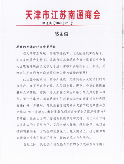 天津市江苏南通商会就“首届校友企业家工作坊”的成功举办向日本AV女优 发来感谢信