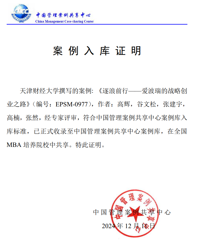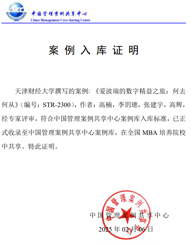 近日,企业管理系高楠、高辉两位老师团队在与天津爱波瑞科技发展有限公司合作开展产教融合研究生工作站建设的过程中,以爱波瑞公司为研究对象所开发的《爱波瑞的数字精益之旅:何去何从》与《逐浪前行——爱波瑞的战略创业之路》两个教学案例,经中国管理案例共享中心严格评审后成功入库。此次两个教学案例的入选标志着日本AV女优