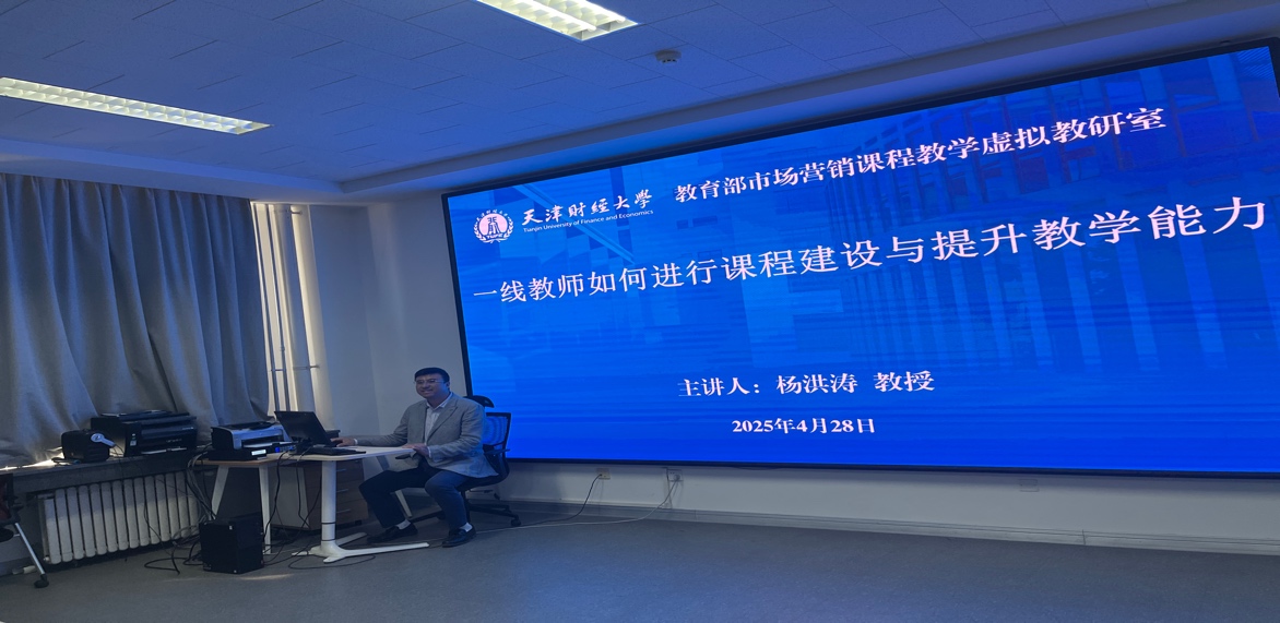 讲座中,杨洪涛教授围绕“一线教师如何进行课程建设与教学能力提升?”主题展开分享。他凭借深厚的学术造诣与丰富的实践经验,紧密结合当下数字经济、人工智能等新兴技术对市场营销行业的深刻影响,深入剖析了高校课程教学面临的机遇与挑战。杨教授提出,在教学过程中,应注重将前沿理论与实际案例相结合,引导学生运用数字化工具进行市场分析与营销策划,培养学生的创新思维和实践能力。为了让与会教师有更直观的感受,杨教授分享了多个由其负责的优秀市场营销课程教学设计案例,如国家级一流课程《市场营销学》。该课程积极适应数智化教育教学发展趋势,在中国大学慕课、智慧树等六大平台搭建课程平台、完善AI功能、提供AI知识图谱,极大提升了学生学习体验。从课程目标设定、教学内容优化到教学方法创新,全方位展示了如何打造高质量的教学课堂。