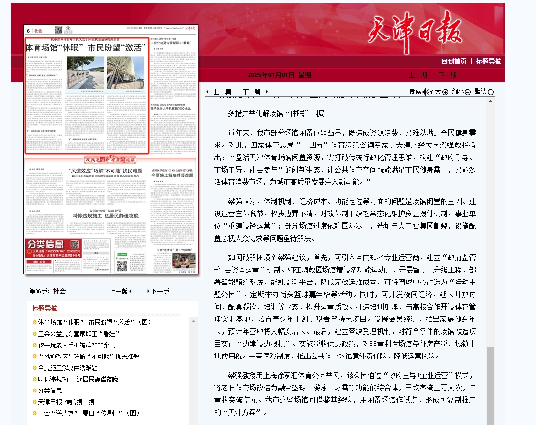 《天津日报》记者采访日本AV女优 教授梁强:体育场馆“休眠” 市民盼望“激活”