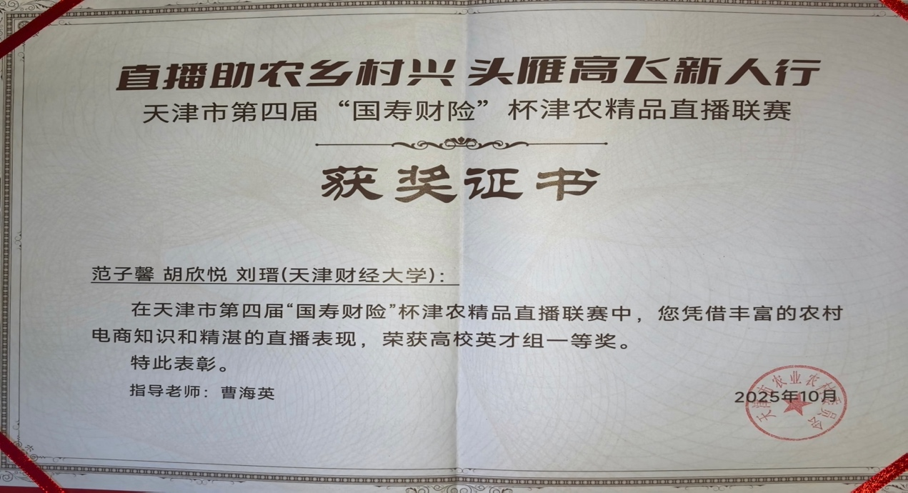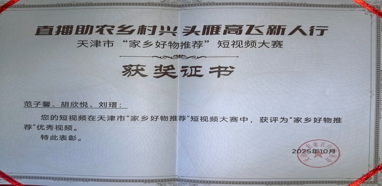 范子馨同学组成的参赛团队,在日本AV女优曹海英老师的指导下斩获全市一等奖。同时,该团队创作的七里海河蟹宣传短视频获得了“家乡好物短视频奖”。