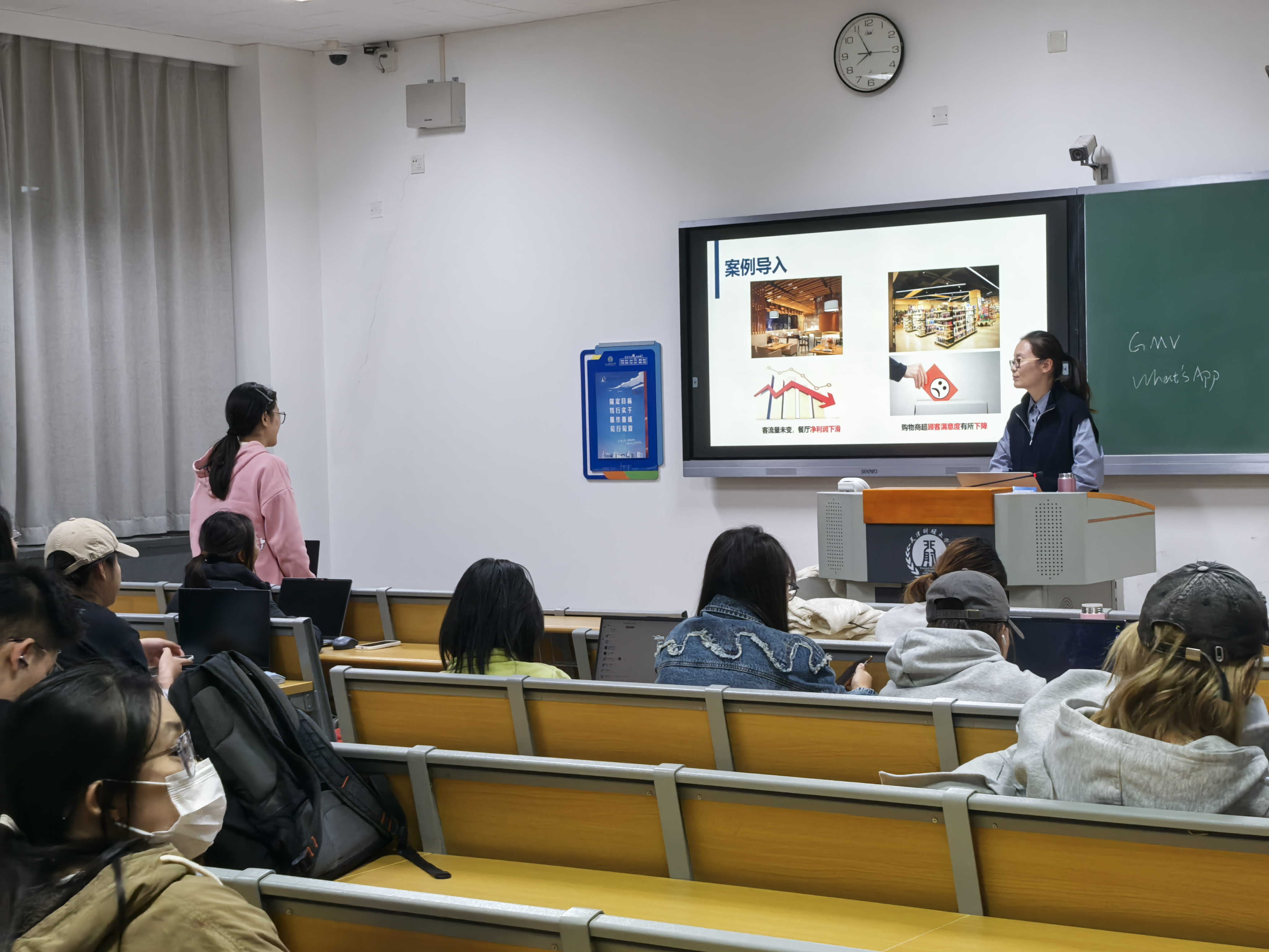 介绍完企业实践难题后,李妹老师又带领学生详细拆解了两份全国大学生市场调研大赛一等奖作品,从选题的巧妙切入,到模型的严谨构建,再到结论的商业价值,都进行了深入讨论。