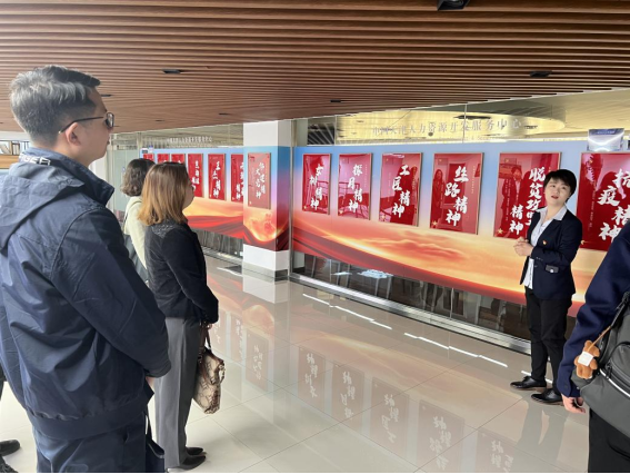 李艳部长首先带领大家参观了中天人力,对其发展历程、服务类别、行业优势、服务客户等方面进行了详细介绍。在以“中国共产党人的精神谱系”为主题的展览长廊,从象征着中国共产党诞生的“红船精神”,到党的二十大所展现的辉煌成就,大家再次回顾了党的奋斗历程和伟大成就,从党的光荣传统和优良作风中汲取了力量。