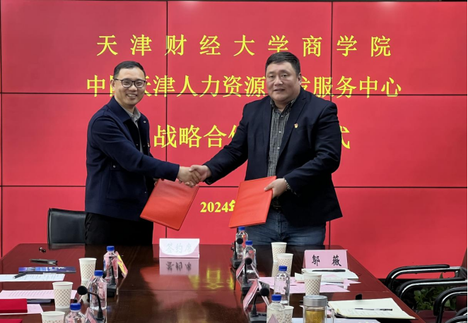 党委书记刘玉斌、副书记严晓芳、人力资源管理系主任王海霞及教师、辅导员代表赴中国天津人力资源开发服务中心开展联合党日活动并签订战略合作协议。中天人力资源开发服务中心副主任刘鹏、党建工作部部长李艳、派遣部副部长才滨楠、于泽汝、业务主管邬薇、天津渤海化工集团有限责任公司人力资源部副部长李志江、主管于涛、天津市河东区人力资源和社会保障局就业科傅瑶参加活动。