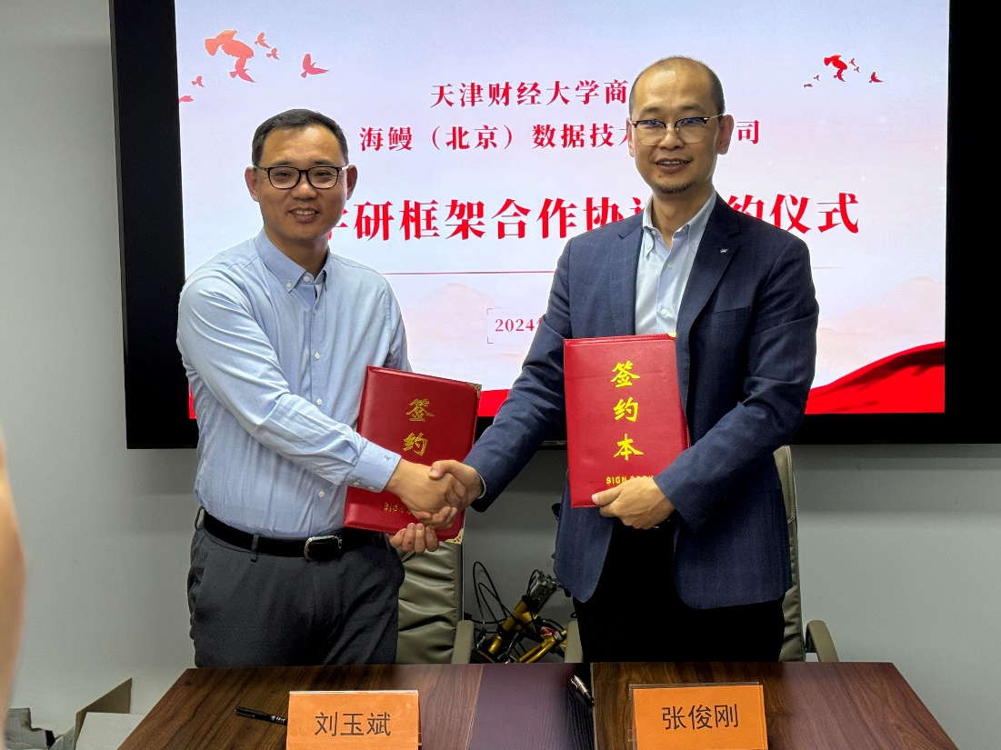 与海鳗(北京)数据技术有限公司签订产学研框架合作协议,双方就产学研实践基地共建达成合作意向和发展共识。经双方商定,双方将本着优势互补的原则,共同打造产教融合研究生工作站,在数字文旅课程开发、旅游市场报告撰写、高水平人才培养等方面展开深度合作。此外,双方将继续联合举办“数客杯”数字经济创新大赛,以实现数智赋能教研,产教协同育人的目标。双方商定对实践基地举行授牌仪式,成立合作工作组,推进并落实合作事宜。