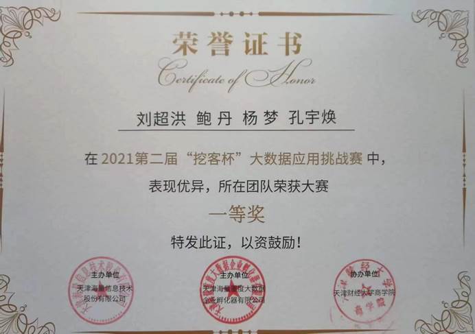 4.“挖客杯”大数据应用挑战赛一等奖(2021年);
