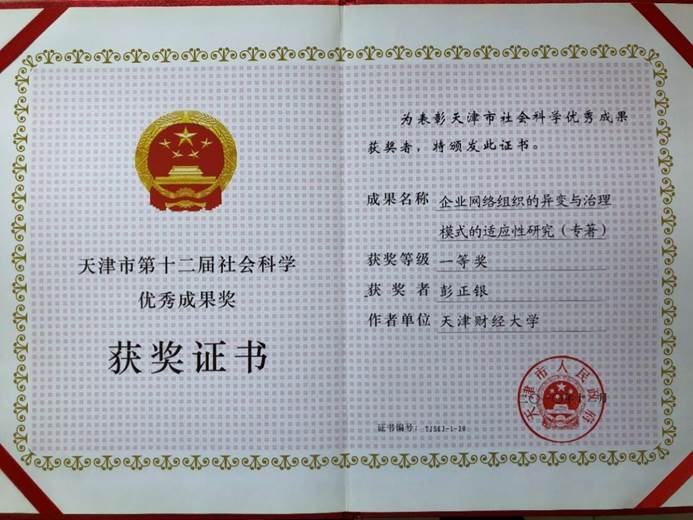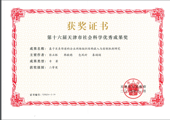 9.天津市第十六届社会科学优秀成果奖,天津市人民政府;