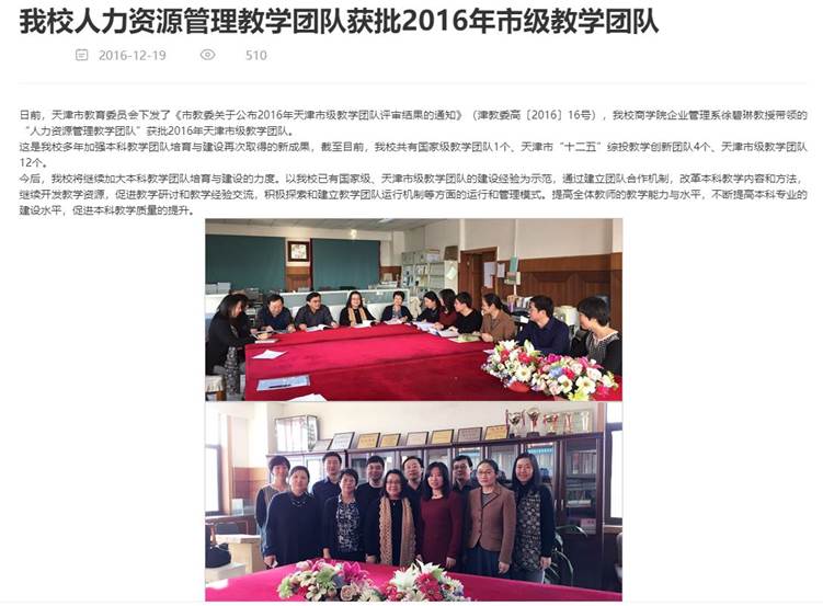 6.天津市教学团队“人力资源管理教学团队”,天津市教育委员会;