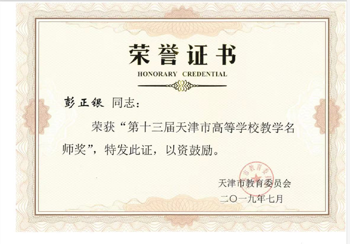 13.第六届高等教育天津市教学成果奖,天津市人民政府;