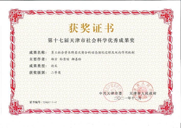 8.天津市第十七届社会科学优秀成果奖,天津市人民政府;