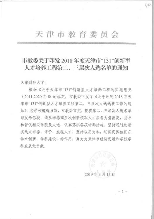 15.天津市“131”创新型培养工程第二层次,天津市教育委员会;