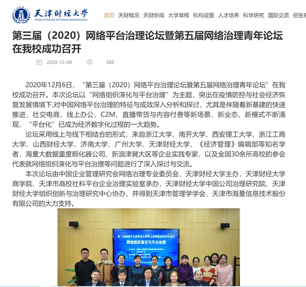 5.承办第三届(2020)网络平台治理论坛暨第五届网络治理青年论坛,并发布《中国网络平台治理研究报告(2020)》;