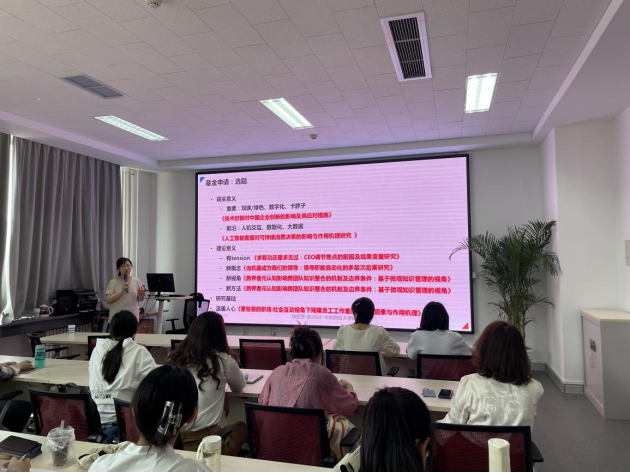 讲座中,张宏宇老师从研究选题、理论贡献和研究态度三个重要方面,深入细致地讲述了她自身在课题申报与论文撰写方面的丰富经验和深刻感悟。在研究选题方面,张老师从现实意义、理论意义以及学者自身研究基础的角度,讲述了学术研究应该如何选题;在理论贡献方面,张老师以自身研究为例,向大家详细解释了什么是真正的理论贡献,以及如何做出理论贡献;在研究态度方面,张老师强调学者们必须秉持严谨认真、精益求精的态度开展学术研究,并对理论基础聚焦、概念应用准确、文献引用全面、写作细节严谨等等各个学术研究的关键要点展开了详细讲述。