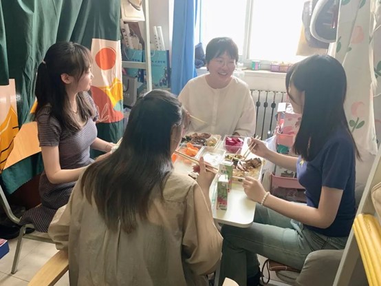 非常感谢“教师外卖”活动,让我们有幸能够获得本次与吕扬老师在宿舍里共进午餐的机会。用餐期间,吕老师从学习方法、考研、未来职业规划等方面进行了细致的指导,并给予了我们很多具体可行的宝贵建议。吕老师平易近人、和蔼可亲,她以幽默风趣的语言耐心地为我们答疑解惑,循循善诱,也让对未来感到迷茫焦虑的我逐渐静下心来,思考真正适合自己的发展方向,使我受益匪浅。