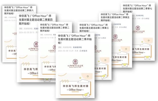 当前推出“Office Hour”系列,为学生与老师的日常交流搭建平台,为同学们解决学业、科研、职业规划等各类成长中的困惑和问题,进一步提升商院学子的专业认同,促进学院优良学风建设,营造浓厚科研氛围,助力学生成长成才。