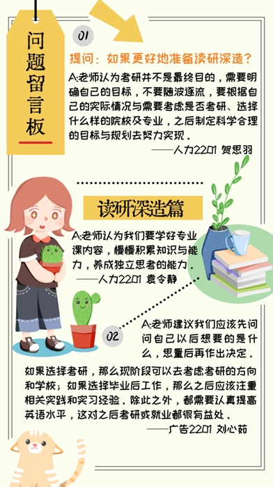 在“问题留言板”环节,大家的困惑多集中于科研竞赛、读研深造、职业与成长规划等方面,同学们在一次次与老师的面对面沟通中迸发新的思考,收获满满。在活动中老师们将自己丰富的经验向同学们倾囊相授,对同学们提出的各方面的问题都耐心热情地给予了解答。