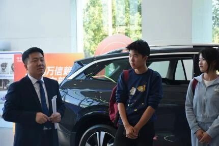 座谈结束后,师生们开启沉浸式参观体验,全方位感知汽车行业运营生态。在赵天龙的带领下,大家走进汽车展厅,深入了解汽车销售业务的全环节,直观感受市场端对产品与服务的需求导向;随后,陈涧生带领同学们走进汽车维修保养车间,详细讲解专业设备的操作规范与服务质量管控体系,让同学们对“汽车售后市场”的运营逻辑有了全新认识。最后,兰晨带领同学们参观新能源商场,围绕新能源汽车的技术特点,分析行业前景与人才需求,为同学们拓展视野、提供职业思考方向。
