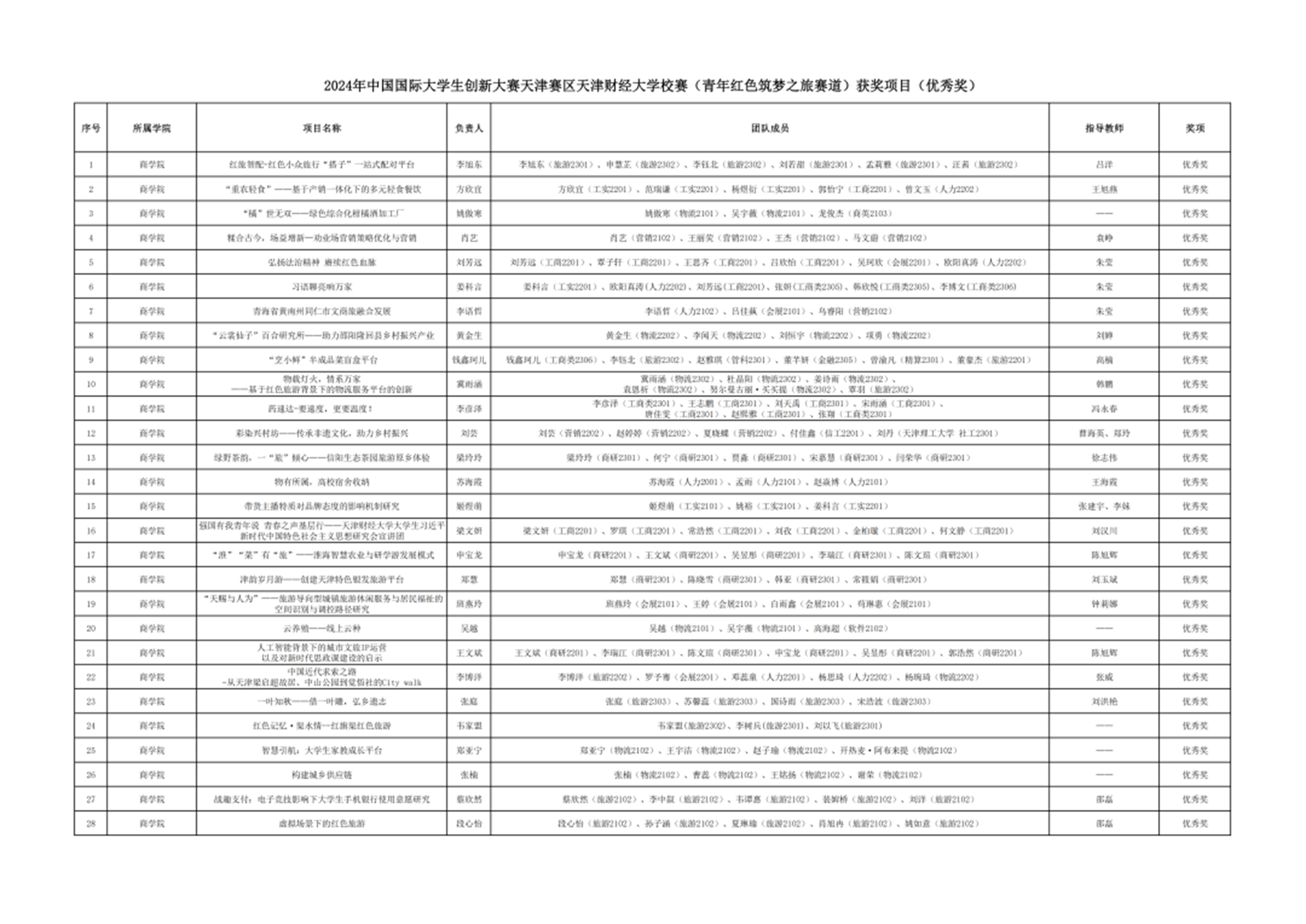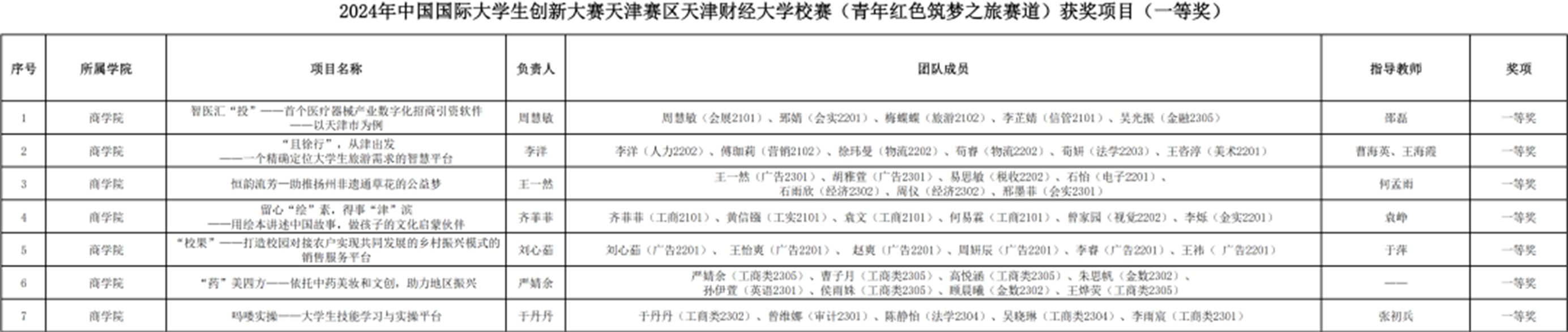 所有获奖的团队!